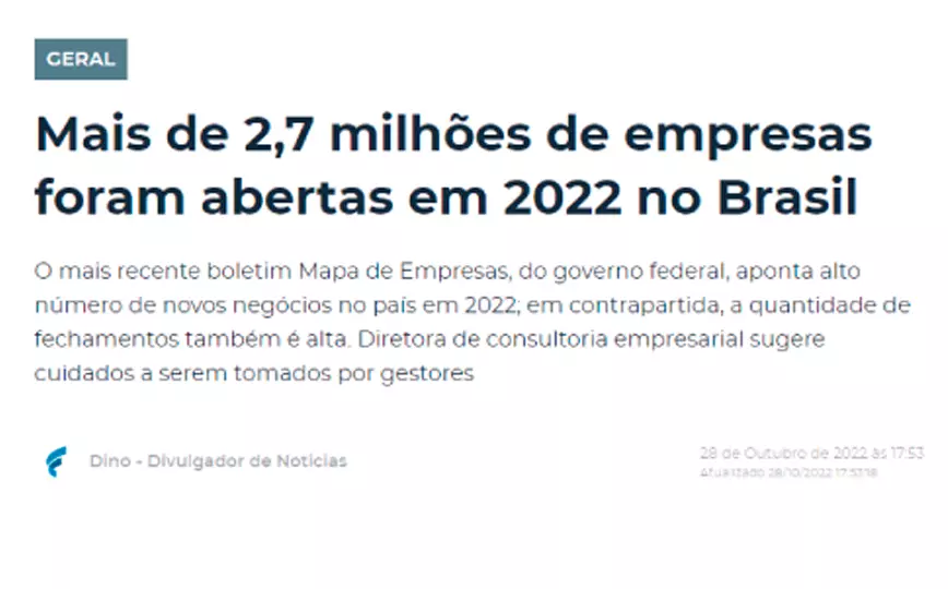 como 2,7 milhões de pequenos negócios em 2022, segundo o portal de notícias da Folha Vitória (fora os negócios informais que não foram contabilizados).
